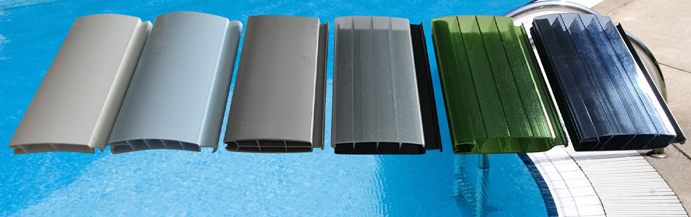 Warum Profilvielfalt? Speziell für die Bedürfnisse jedes Schwimmbades haben wir unsere Profile entwickelt. Das kleinste 2 Kammer Profil zum nachrüsten von Folie oder bei wenig Platzbedarf,das mittlere 4 Kammer Profil bietet die optimale hochstabile Isolierkammer und unser Hightech 6 Kammer Profil mit Doppelhaken ist wendbar. Solarprofile für passive Solarerwärmung. Außerdem 3 Profile in Polycarbonat. Alle Profile sind 2fach luft- und wasserdicht versiegelt. Selbstverständlich haben alle Profile die bewährte Klipptechnik zur Vereinfachung der Montage und Demontage. Drei Profile sind 2004 neu entwickelt worden, somit konnten Erfahrungen in den letzten Jahre einfließen sowohl im privaten wie im öffentlichen Bereich.