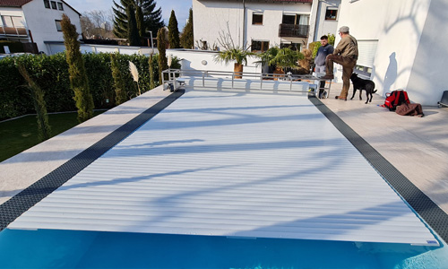 Um Ihnen eine umfassende kompetente Beratung anbieten zu können, ist es nötig, dass Sie uns die genauen Gegebenheiten Vorort wie: Beckenumfeld, Beckenform, Ihre eigene Vorstellung von der Abdeckung bekannt geben. Jedes Becken hat seinen eigenen Charakter. Unsere geschulten Fachhändler, sowie technisches Personal hier im Werk berät Sie gerne und zeigt Ihnen die möglichen Einbauvarianten, sowie die für Sie optimale Lösung. Gerne machen wir eine Vorortbesichtigung mit Ihnen um individueller auf Ihre Wünsche eingehen zu können.