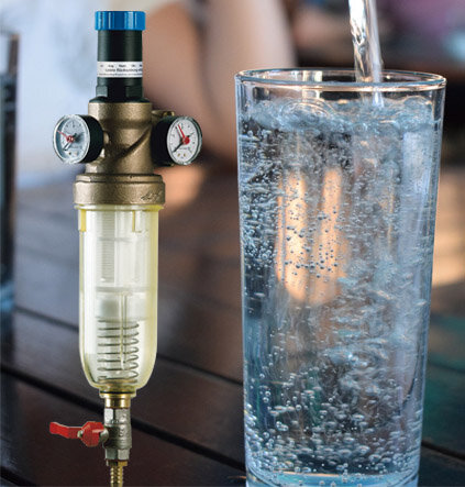 Beim Rückspülfilter fließt das Wasser von außen nach innen durch das Filterelement und gelangt sauber und gefiltert in Ihr Leitungsnetz. Partikel mit einer Größe über 0,1mm werden vom Filtersieb aufgefangen .Der Reinigungsvorgang erfolgt durch öffnen des Kugelhahns. Dabei fließt beim Rückspülvorgang das Wasser in umgekehrter Richtung durch den Filtereinsatz. Die im Filter zurückgehaltenen Partikel werden so mit dem Spülwasser über einen Auslauf ins Freie gespült. Aus hygienischen Gründen muß spätestens alle zwei Monate eine Rückspülung erfolgen.